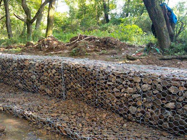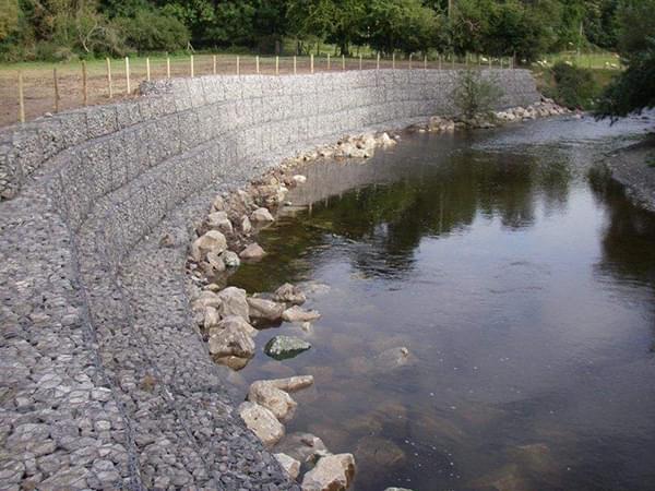 河道石笼网主要用于引导河流水,河流一般会顺着固有的河槽流动,河道可能有自然形成的弯曲的河道,如果发生洪水,水量巨大,水流湍急,水流会在惯性下,趋于直向流动,会猛烈地冲击原来的河槽和堤坝,有可能使河流改道,那样将造成巨大的灾难。为了减轻湍急的水流冲刷河堤,在河堤的内侧或者河槽的边缘,铺石笼网箱或者石笼网垫,汹涌的河水直接冲击石笼网箱或者石笼网垫,这样保护河堤或者河槽。河水在弯曲的河道处,由于遇到石笼网箱或者石笼网垫,河水就会拐弯,顺着固有的河道流淌。石笼网也应用到泄洪坝和导流坝,起到引导或者约束洪水的作用。