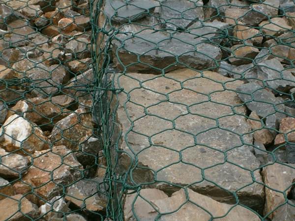 pvc包塑格宾网又称绿格网。在国外,这种产品被制作成一种名为gabion的结构箱体。格宾是单词gabion的音译,简明英语词典中的解释是: 篾筐,金属筐。pvc格宾网是近年来运用于交通、水利、市政、园林,水土保持等工程项目中的一种新型材料结构。pvc包塑格宾网(绿格网)是将抗腐耐磨高强的低碳高镀锌钢丝或10%铝锌稀合金镀层钢丝(或同质包覆聚合物钢丝),由机械将双线绞合编织成多绞状、六边形网目的网片,其双线铰合部分的长度应不小于5cm,以不破坏钢丝的防护镀层。绿格网可根据工程设计要求组装成箱笼,并装入块石等填充料后连接成一体,用做堤防、路基防护等工程的新技术。如果在低碳高镀锌或10%铝锌稀合金钢丝表面包覆上一层PVC或者PE(不可采用其他聚合物),其成品结构将更加具有防锈,防静电,抗老化,耐腐蚀,高抗压,高抗剪等特点,能有效抵抗海水或高度污染环境。