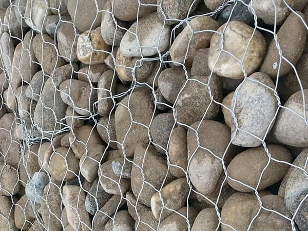镀高尔凡格宾是由经镀高尔凡(5%-10%铝锌合金+稀土元素)防腐处理的低碳钢丝经机器编织成的六边形双绞合钢丝网,在工厂做成符合工程要求的网箱,通过在构件中填石构成主要用于支挡(冲刷)防护的结构,其具有优于EN10223~3标准中所述网箱的力学性能。其镀层的粘附力要求:当钢丝绕具有4倍钢丝直径的心轴6周时,用手指摩擦钢丝,其不会剥落或开裂,符合EN10223~3标准。钢丝的抗张强度应在350~550N/mm2,未经拉伸钢丝的延伸率不能低于12%(经过拉伸加工的成品钢丝延伸率不能低于7%)。,该结构具有整体性、柔性、生态性及施工便捷等诸多优点,主要用于堤岸、岸坡坡面防冲刷和河(渠)床底、坡脚等防淘刷防护。